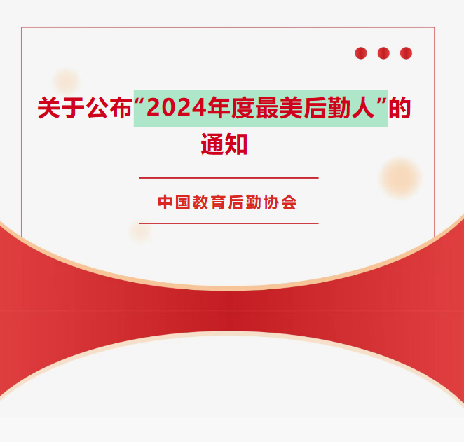 为全方位展现教育后勤工作者“匠心护航青春、丹心孕育桃李”的感人事迹,大力弘扬后勤人扎根一线、默默奉献的崇高精神,中国教育后勤协会在全国教育后勤系统组织开展了以“新时代新奉献”为主题的“2024年度最美后勤人”推举活动。活动旨在挖掘和宣传一批具备“敢为人先、追求卓越”进取精神、践行“启智润心、服务育人”躬耕精神、锤炼“迎难而上、笃行实干”工匠精神的先进典型,以及将“党建引领”和“立德树人”落到实处的最美服务团队。
